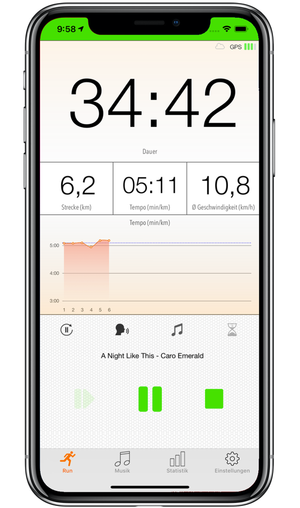 Das Training und die Musik können zusammen mit einem einzigen Klick an der Kopfhörer Fernbedienung gestartet werden. Selbstverständlich sind auch Pausen und nächstes/vorheriges Lied über die Fernbedienung möglich.