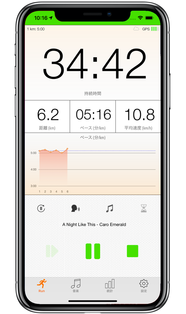 GPS受信による正確な一時停止の自動探知機能完備。再開後すぐに自動的にランニング追跡が継続されます。
